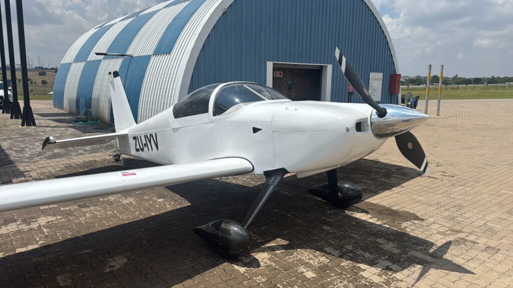 ZU-IYV took to the skies at Eagles Creek Airfield in Johannesburg today. The machine has Dual G3X Garmin 175s Garmin Autopilot. It has a carbon instrument panel with carbon tips all-round except the wing tips, in addition to carbon spats fairings and cuffs. The plane also has factory-new M1B and Hartzell composite two-blade prop.